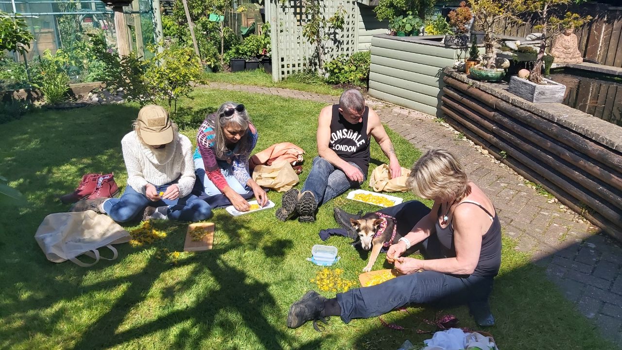 Sorting Dandelion Flowers in preparation to make Dandelion Flower Tonic and Tincture.